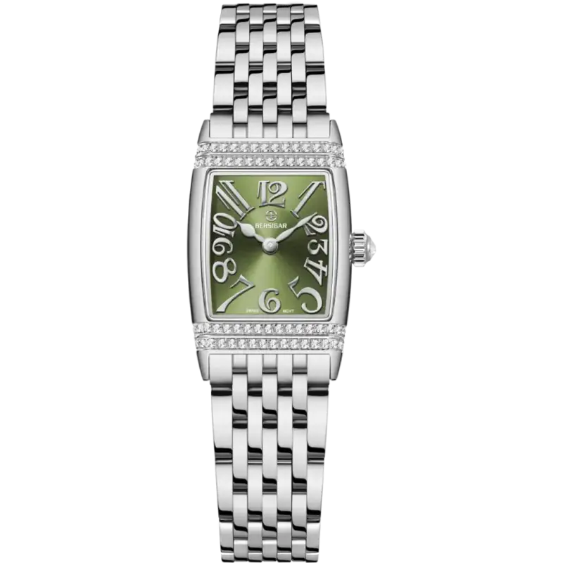 Discover the elegant design of the Bersigar 1737 For Women watch. Its square shape and Green dial, adorned with sparkling stones, exude sophistication. Ideal for any occasion, this watch adds the perfect touch of style and glamour to your outfit. Elevate your look with this must-have timepiece.