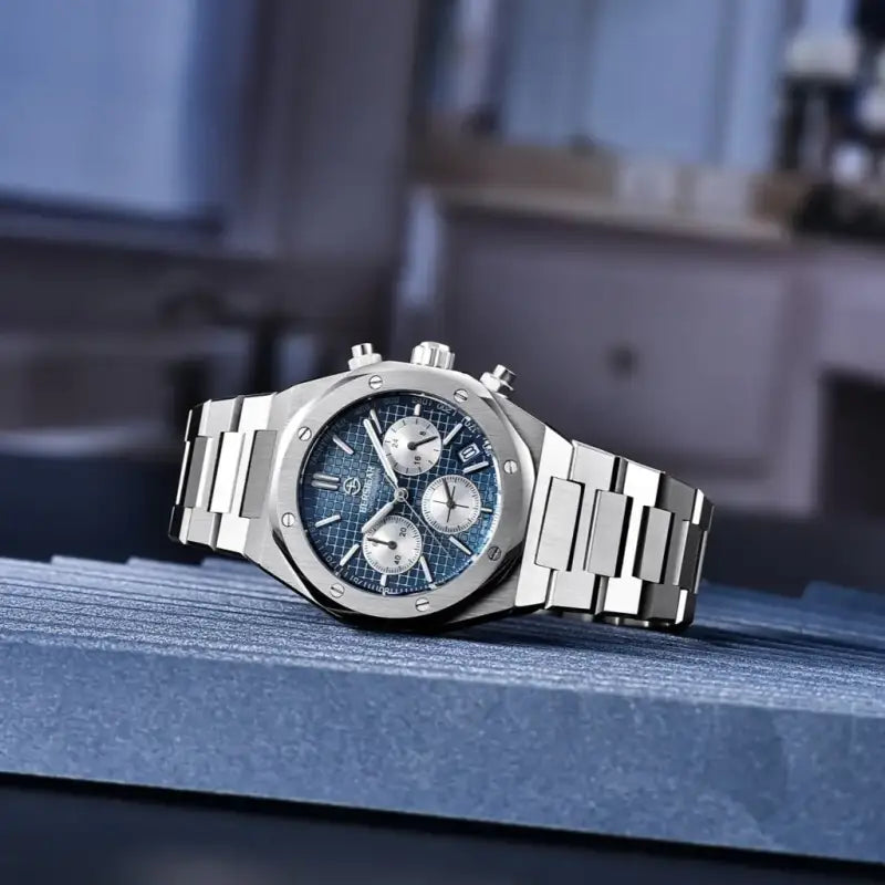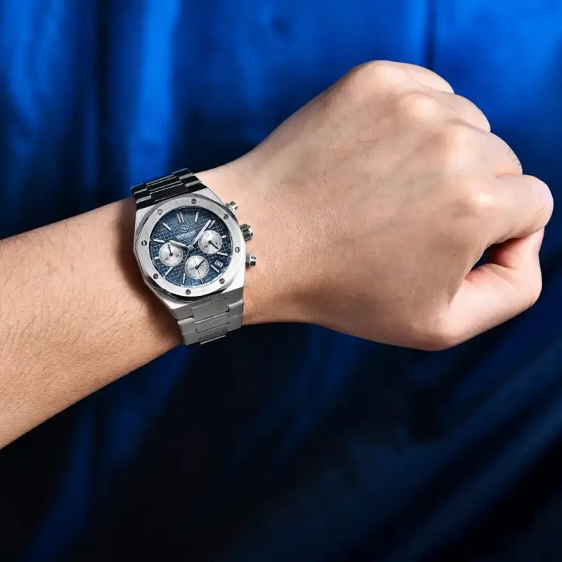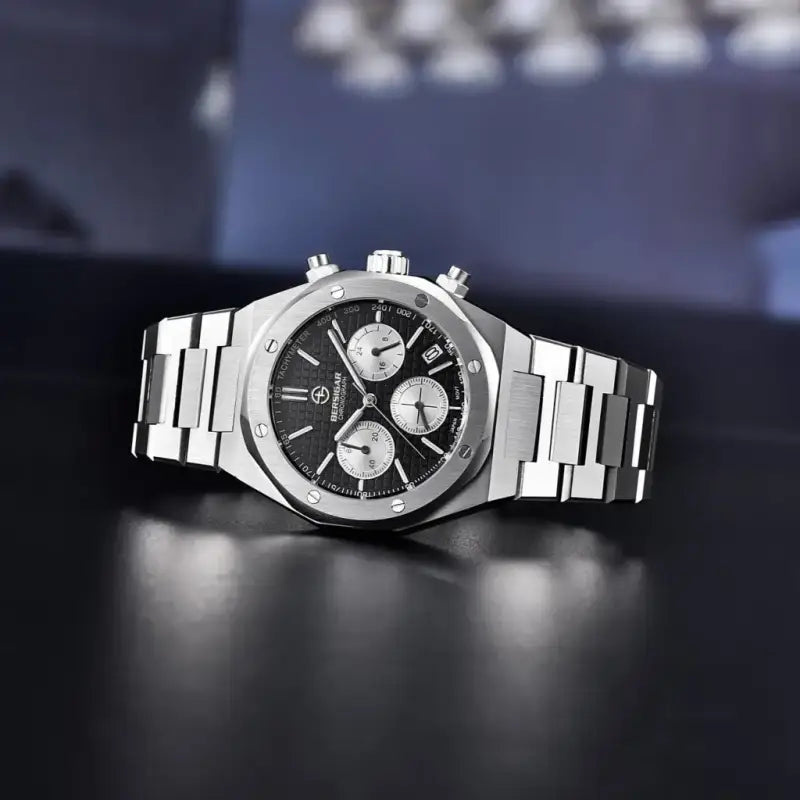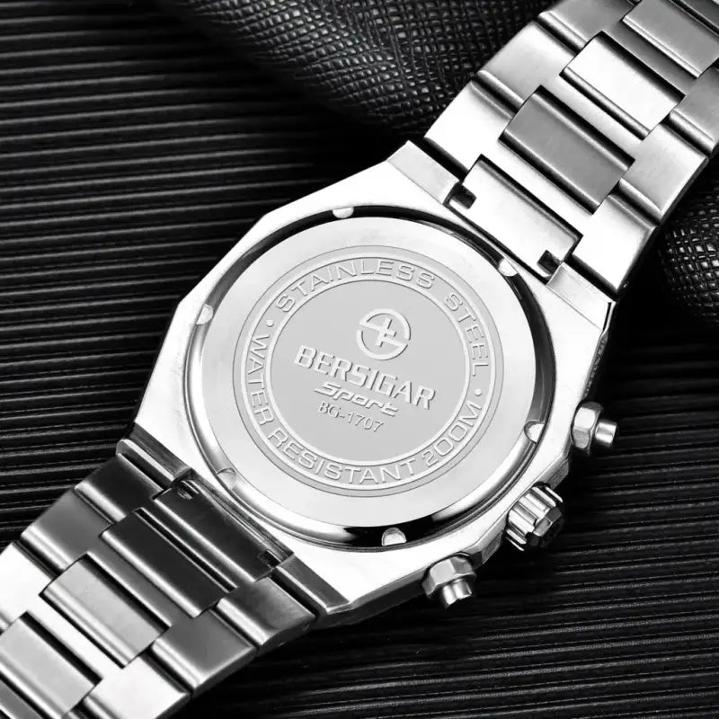 Bersigar Allegro 1707 - Bersigar Watches. Premium materials and casual design, Sapphire dial window, full 316L stainless steel construction with screw-down crown, transparent case back, solid and flexible watchband with classic fold-over clasp.