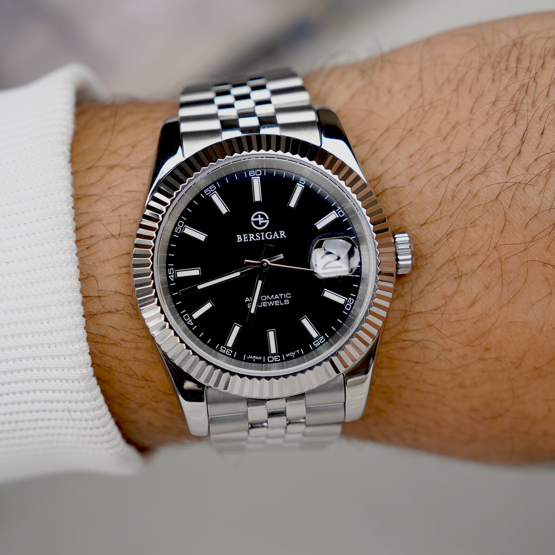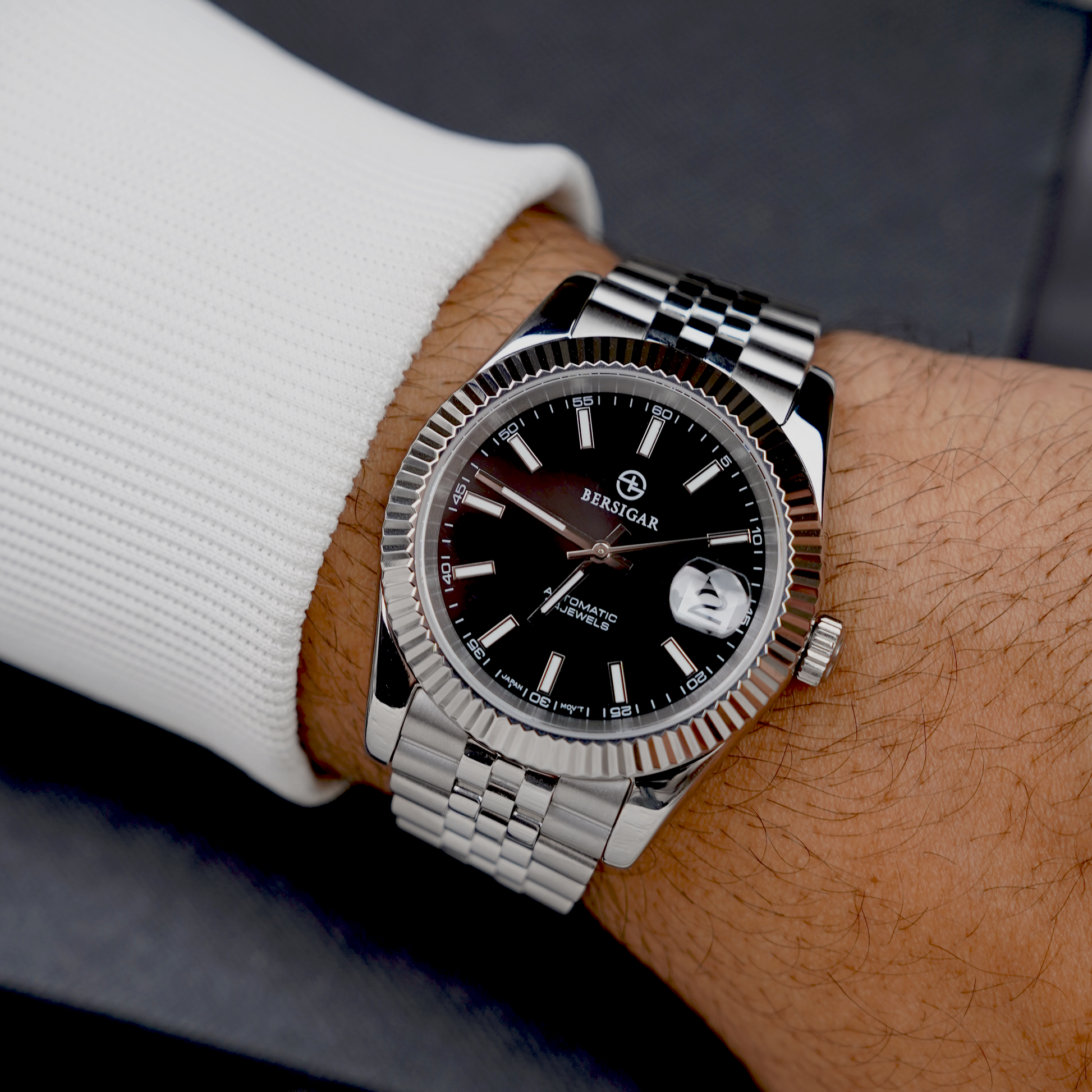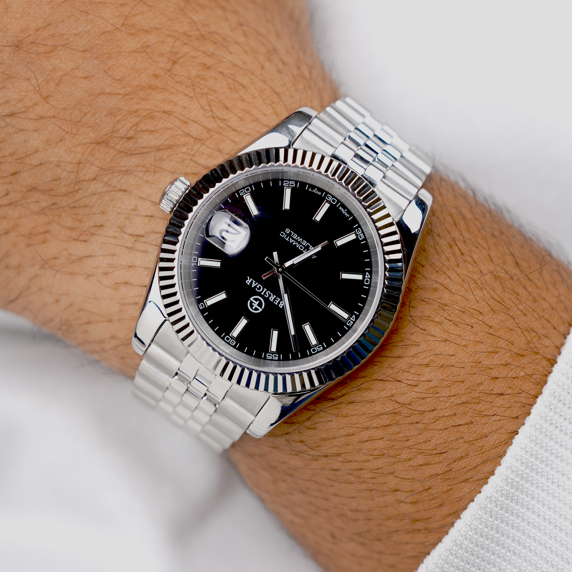 Bersigar luxaura 1645 Premium materials and casual design, Sapphire dial window, full 316L stainless steel construction with screw-down crown, transparent case back, solid and flexible watchband with classic deployment clasp