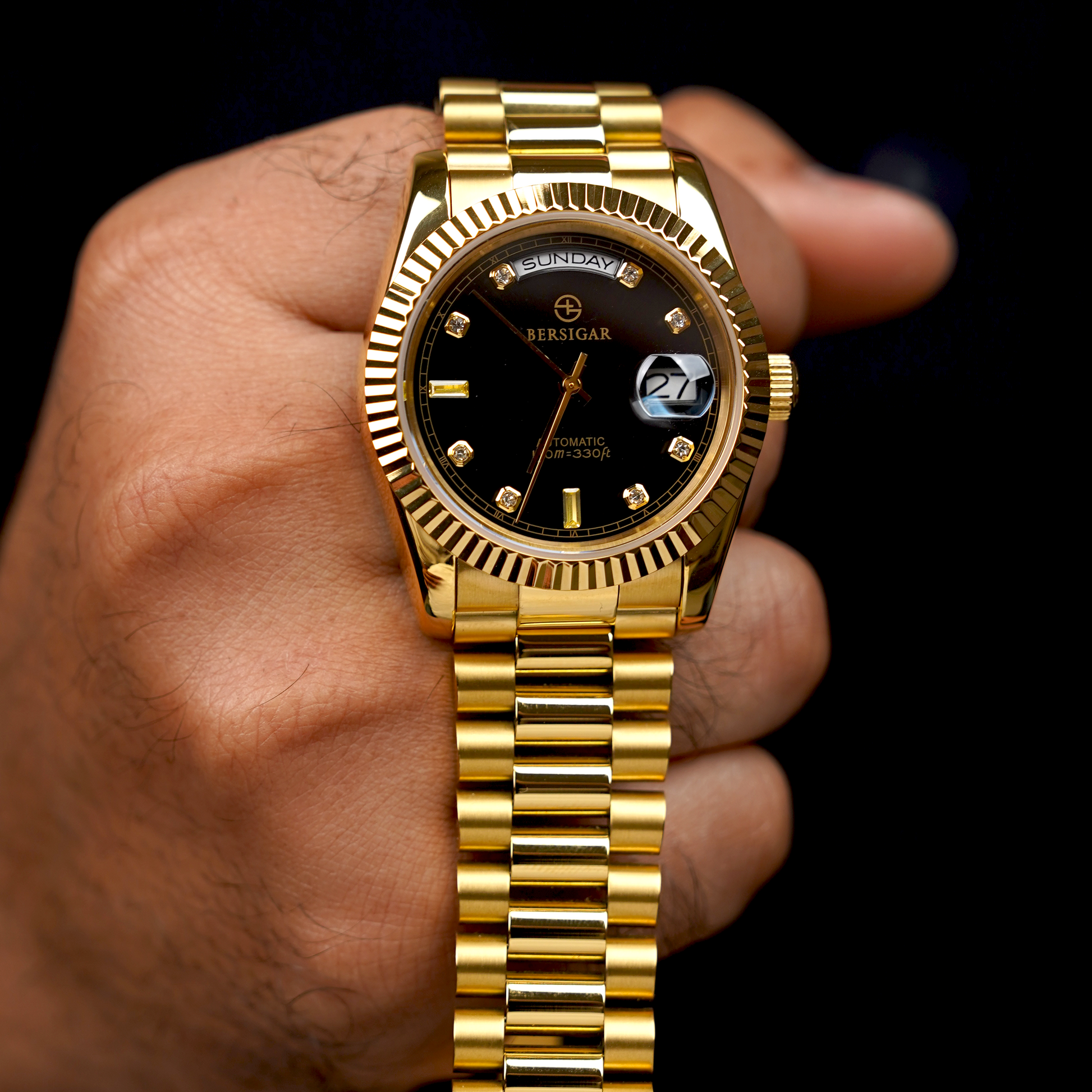 Bersigar luxaura 1752 Premium materials and casual design, Sapphire dial window with AR coating, stainless steel construction with screw-down crown, solid case back, solid and flexible watchband with a classic fold-over clasp