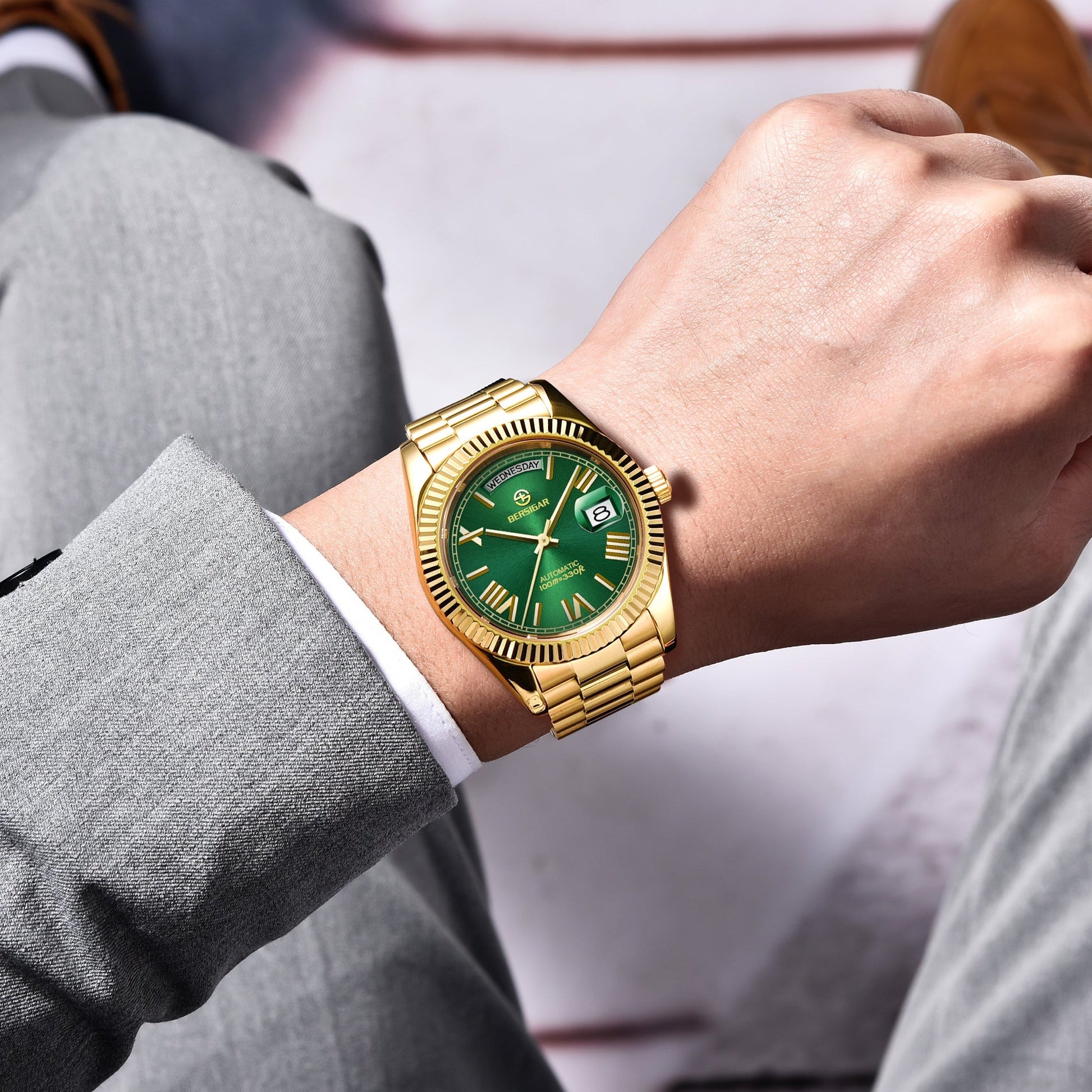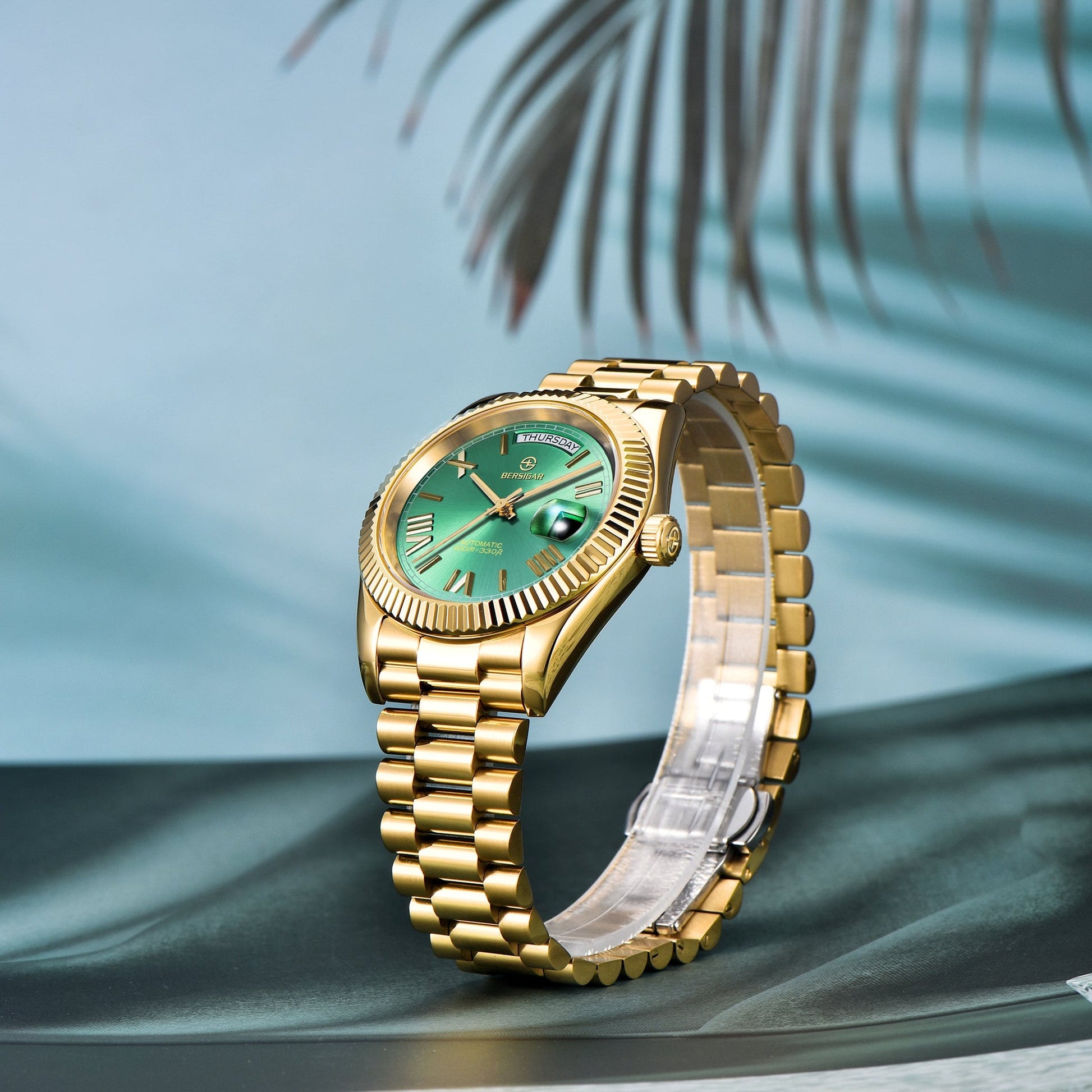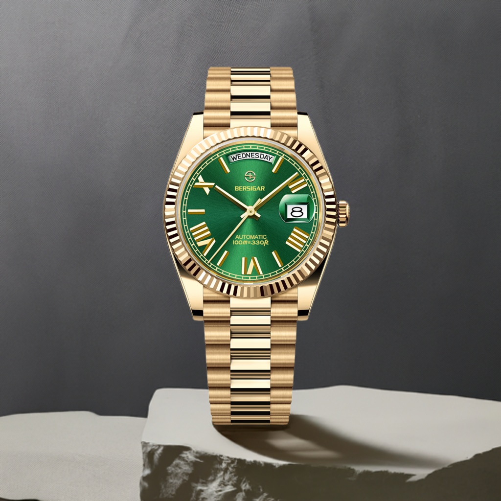 Bersigar Luxaura 1783 Premium materials and casual design, Sapphire dial window with AR coating, stainless steel construction with screw-down crown, solid case back, solid and flexible watchband with a classic fold-over clasp