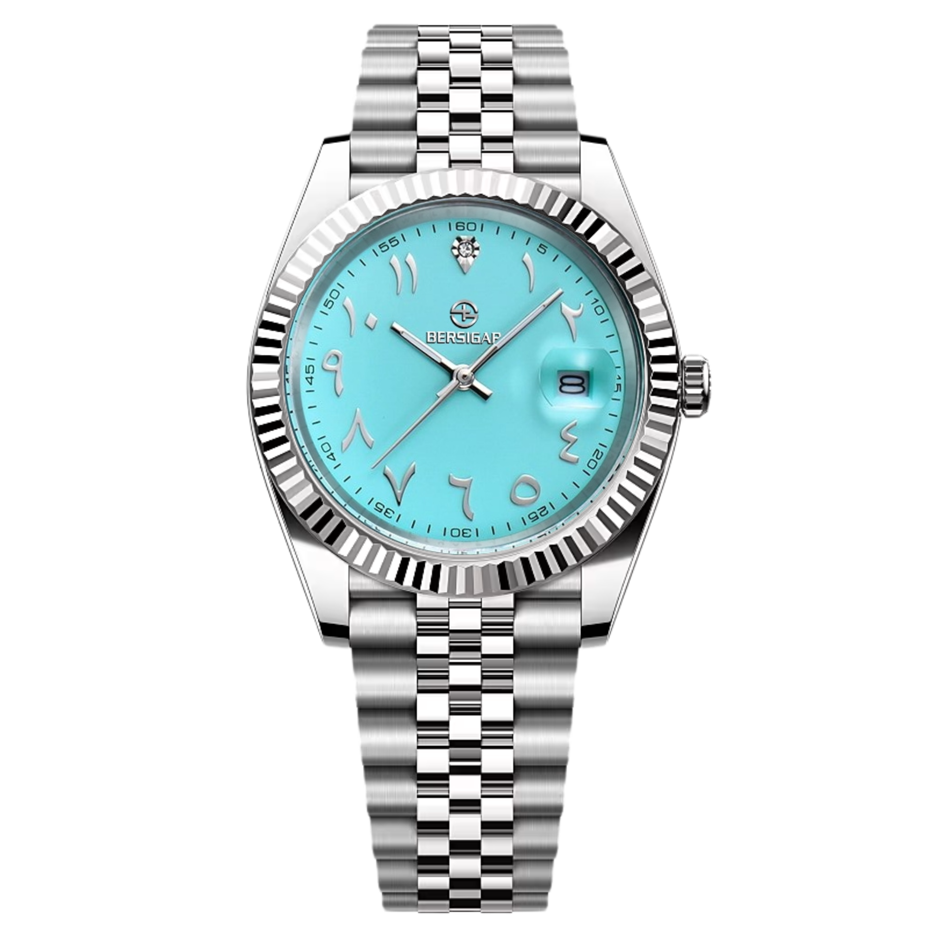 Bersigar luxaura 1645 Premium materials and casual design, Sapphire dial window, full 316L stainless steel construction with screw-down crown, transparent case back, solid and flexible watchband with classic deployment clasp