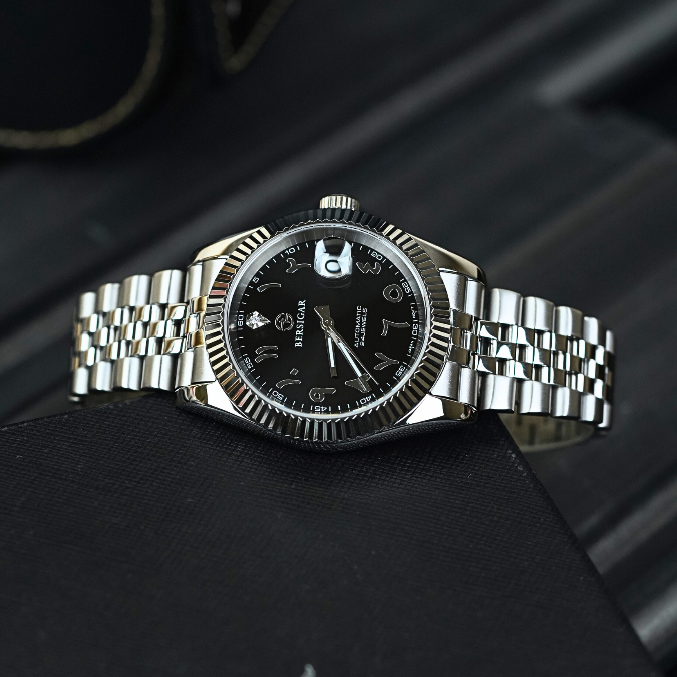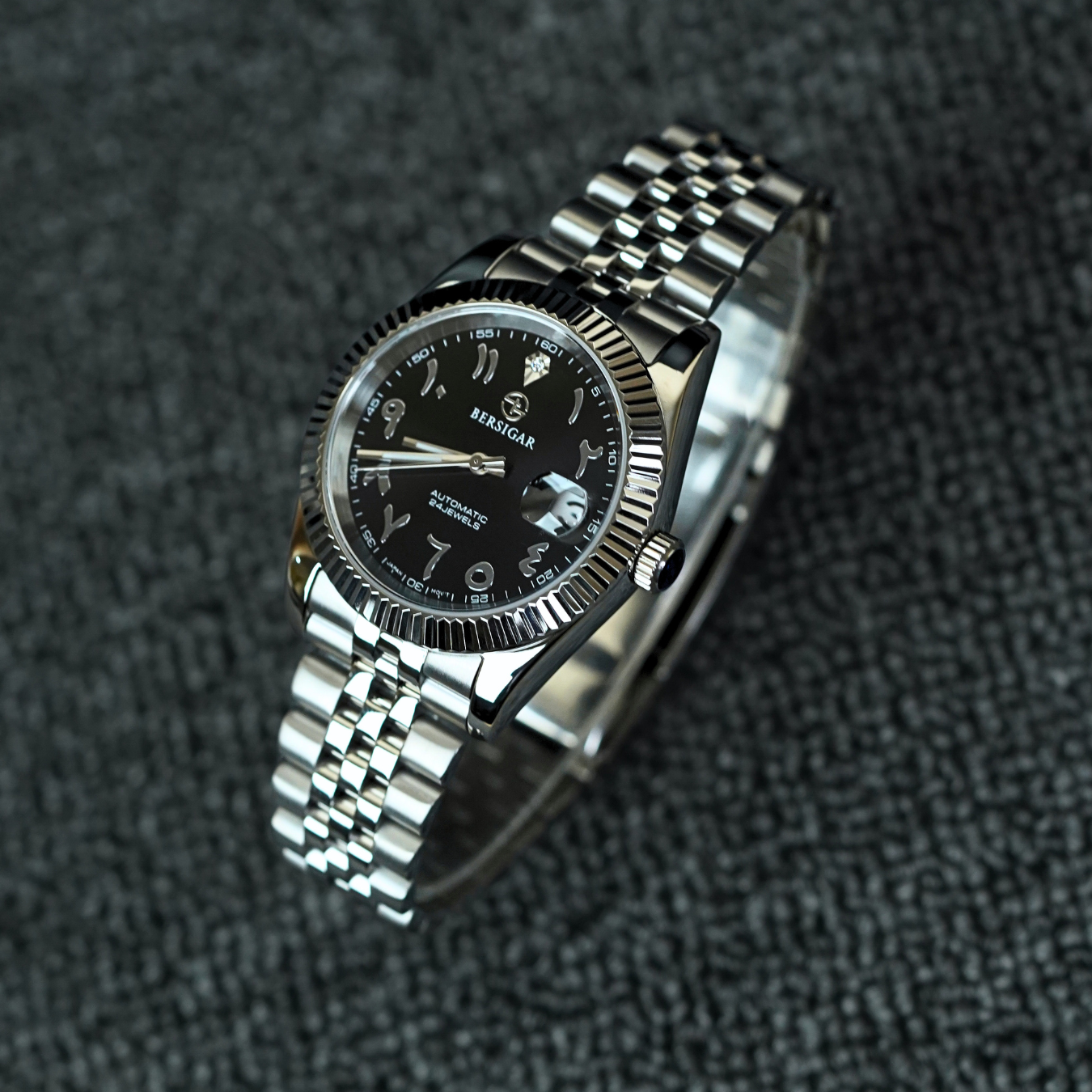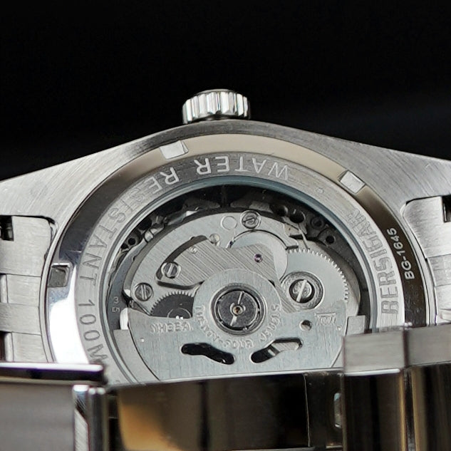 Bersigar luxaura 1645 Premium materials and casual design, Sapphire dial window, full 316L stainless steel construction with screw-down crown, transparent case back, solid and flexible watchband with classic deployment clasp