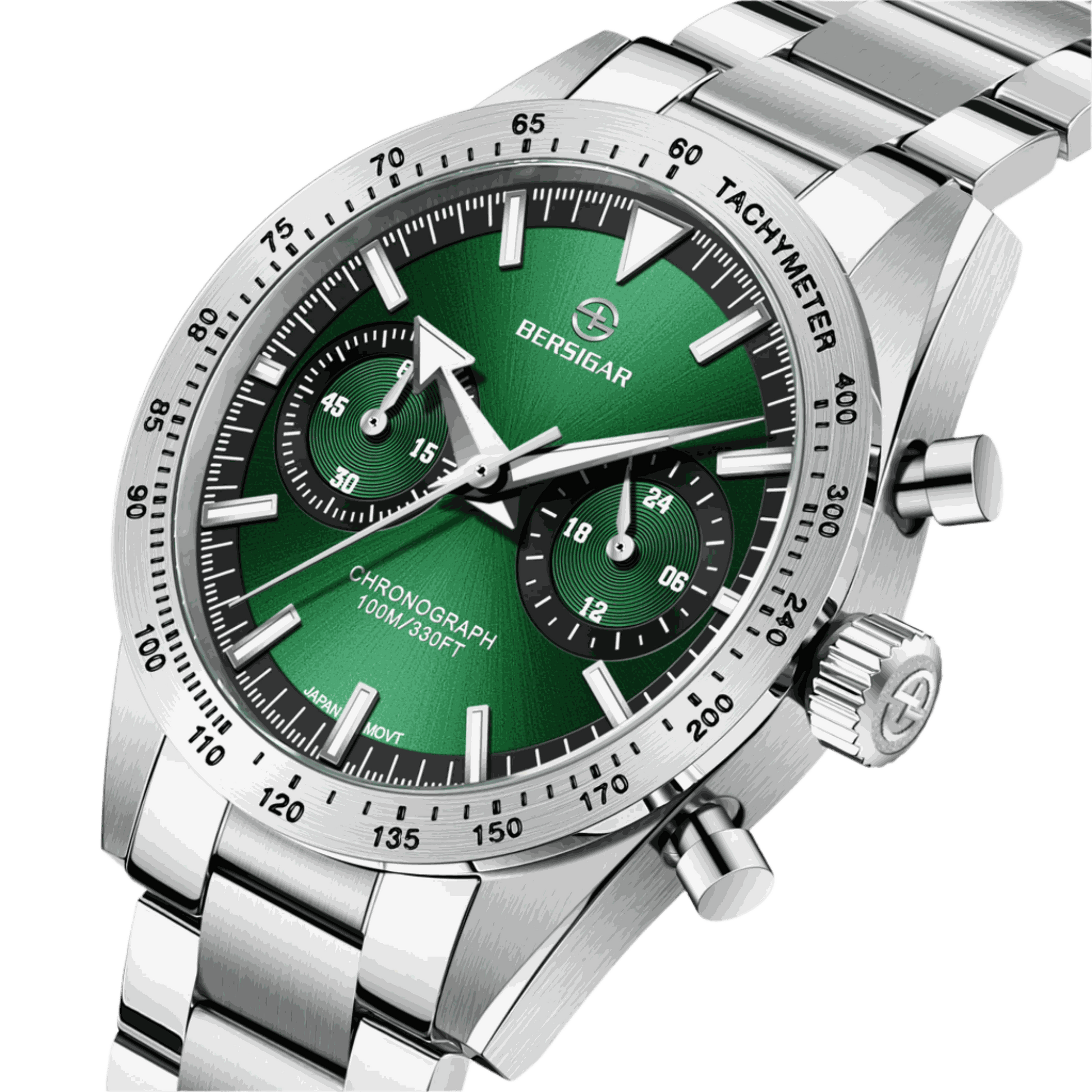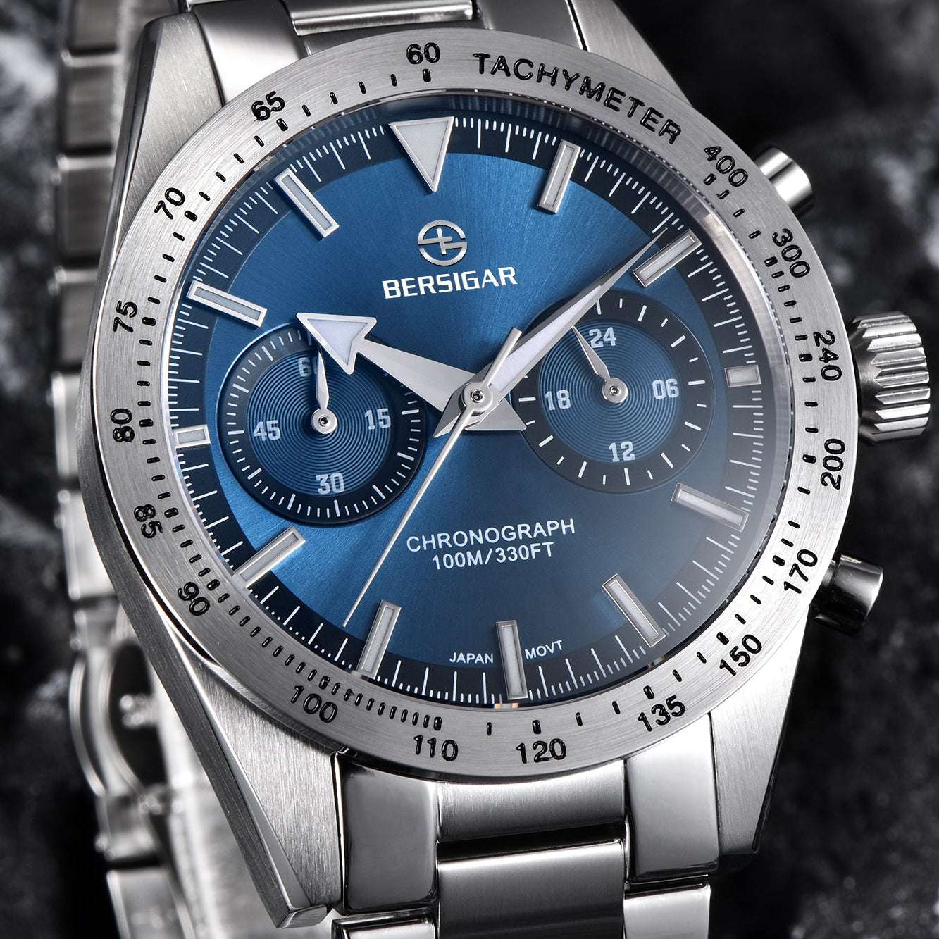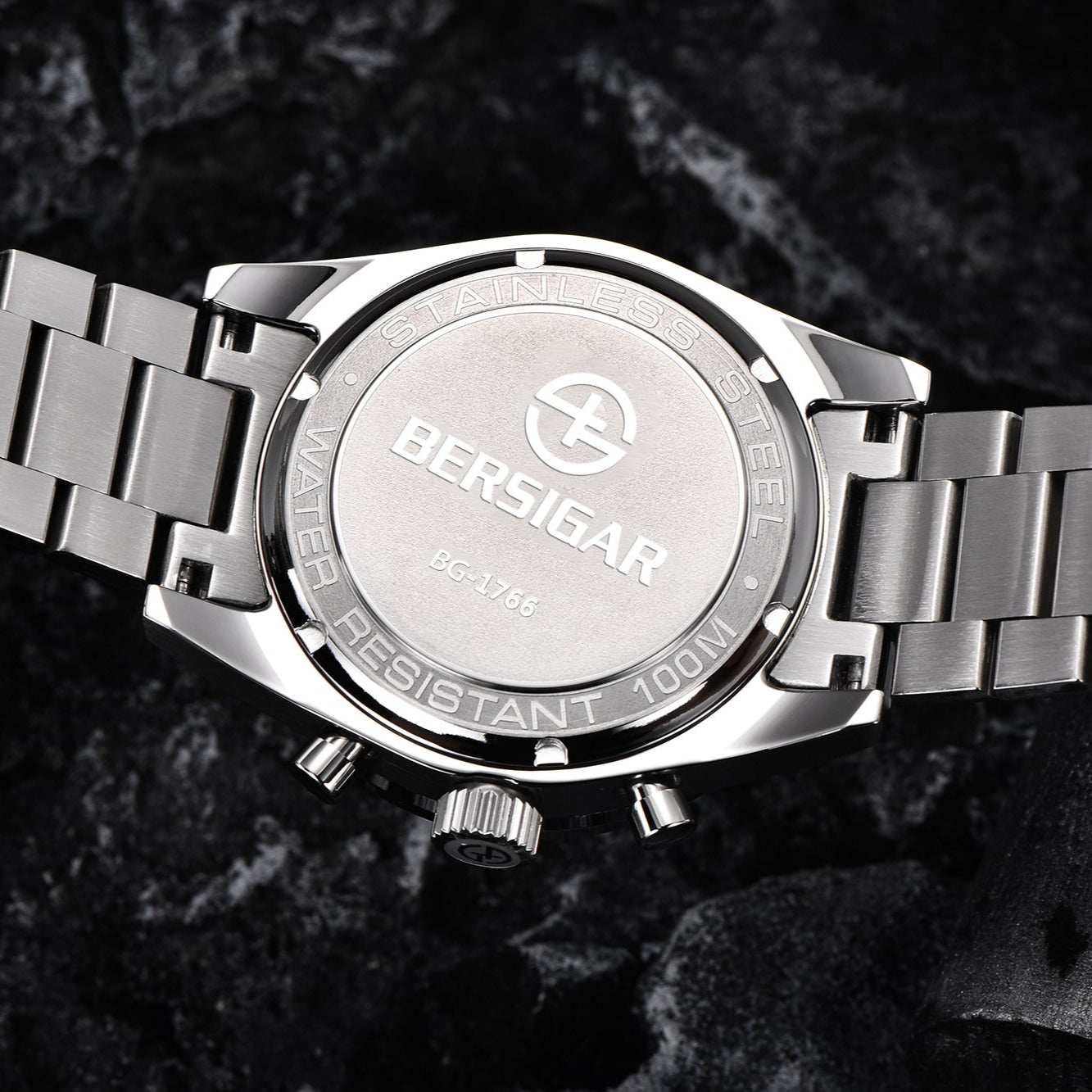 Bersigar ocular 1766 Premium materials and casual design, Sapphire dial window, stainless-steel construction, solid case back, solid and flexible steel bracelet with classic fold over clasp.