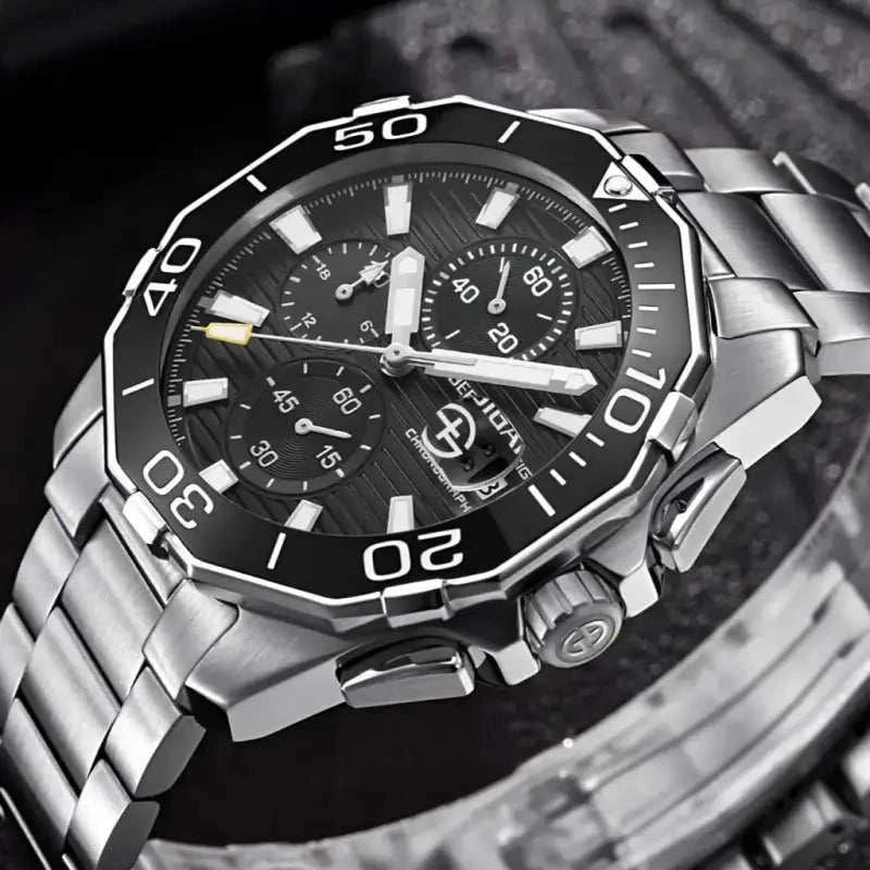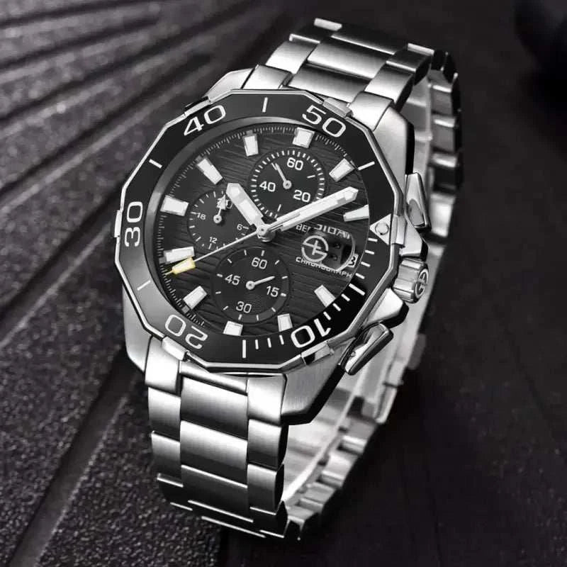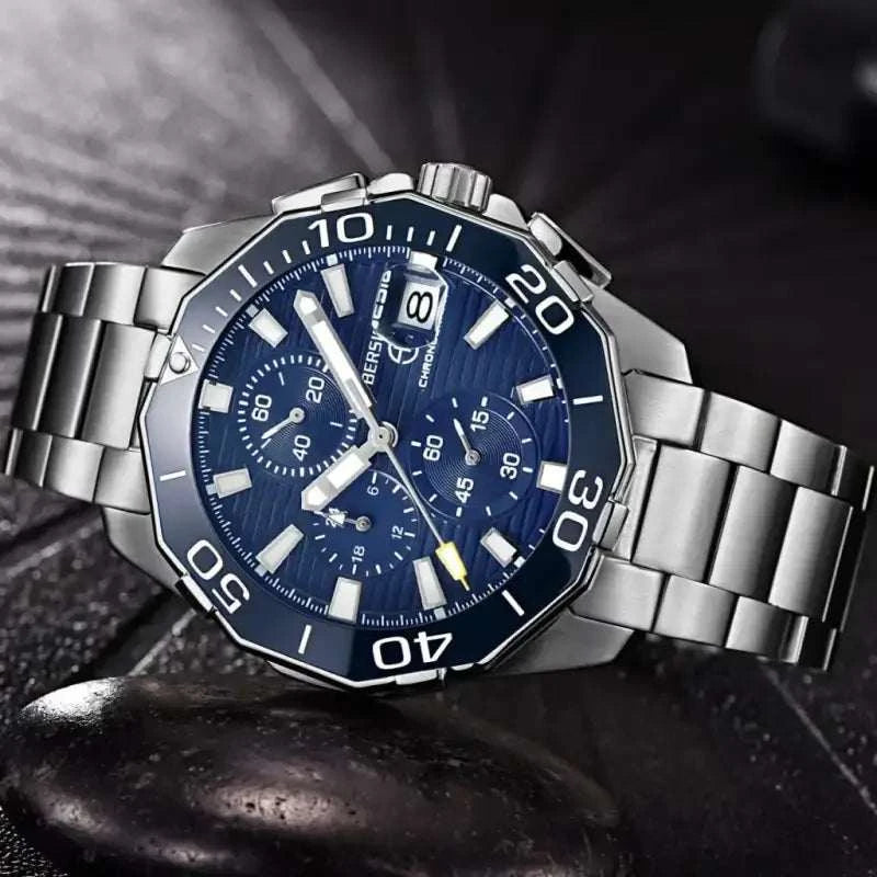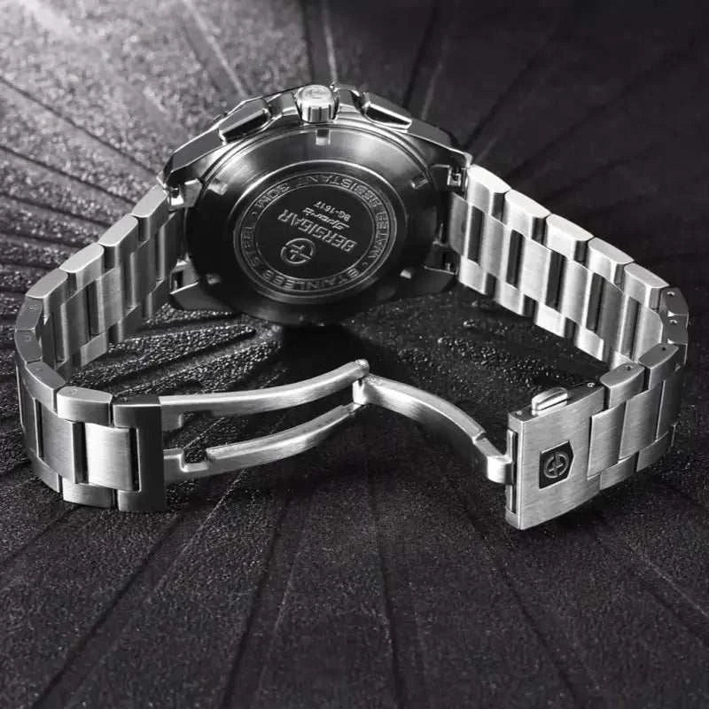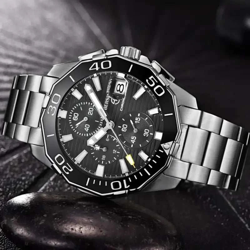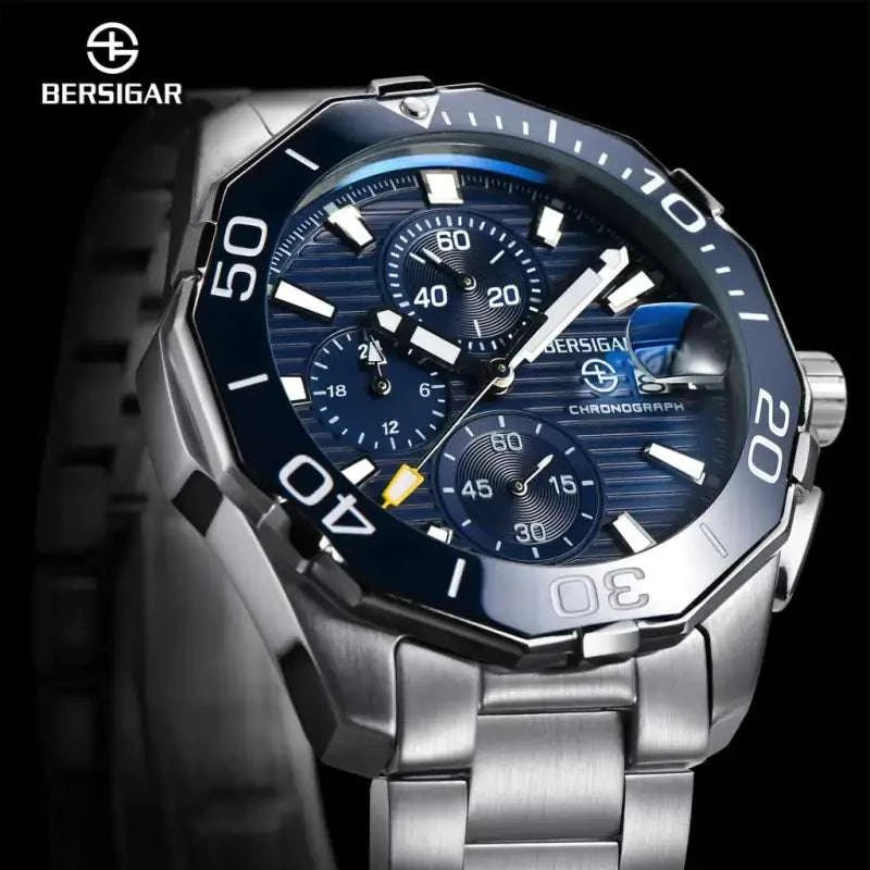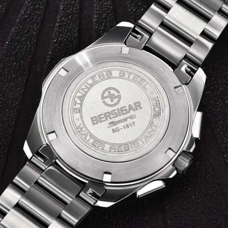 Bersigar timecraft 1617 - Premium materials and casual design, Hardlex dial window, Full 316L stainless steel construction with screw-down crown, Counter-clockwise rotating ceramic bezel, Solid and flexible watch strap with clasp classic folding.
