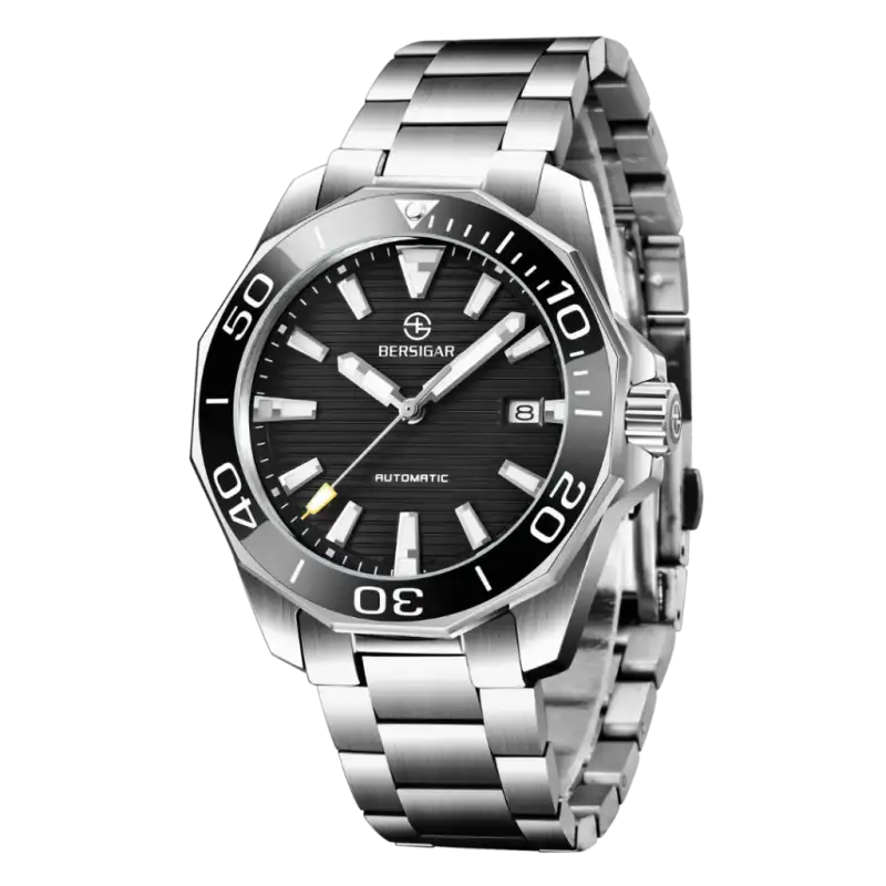 Bersigar timecraft 1668 Premium materials and casual design,Sapphiredial window, full stainless steel construction withscrew-downcrown, theceramic bezelcan be rotated counterclockwise and transparent case back, solid and flexible watchband with classic fold-over clasp, or genuine leather watchband with buckle.