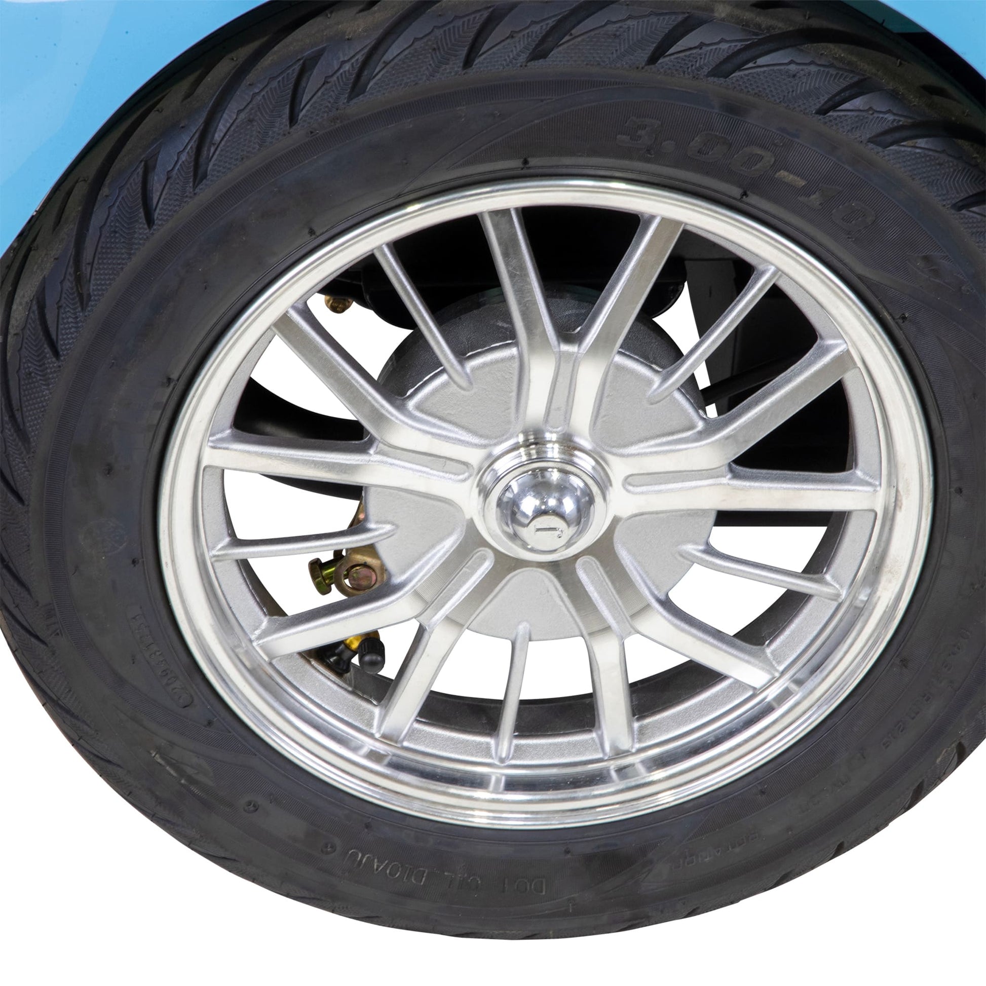 - This mobility scooter comes with a digital speedometer, bright LED lighting, and secure storage compartments beneath the seat and at the back. The adjustable seat with a headrest offers comfort, while suspension springs and tubeless tires deliver a smooth and stable ride.