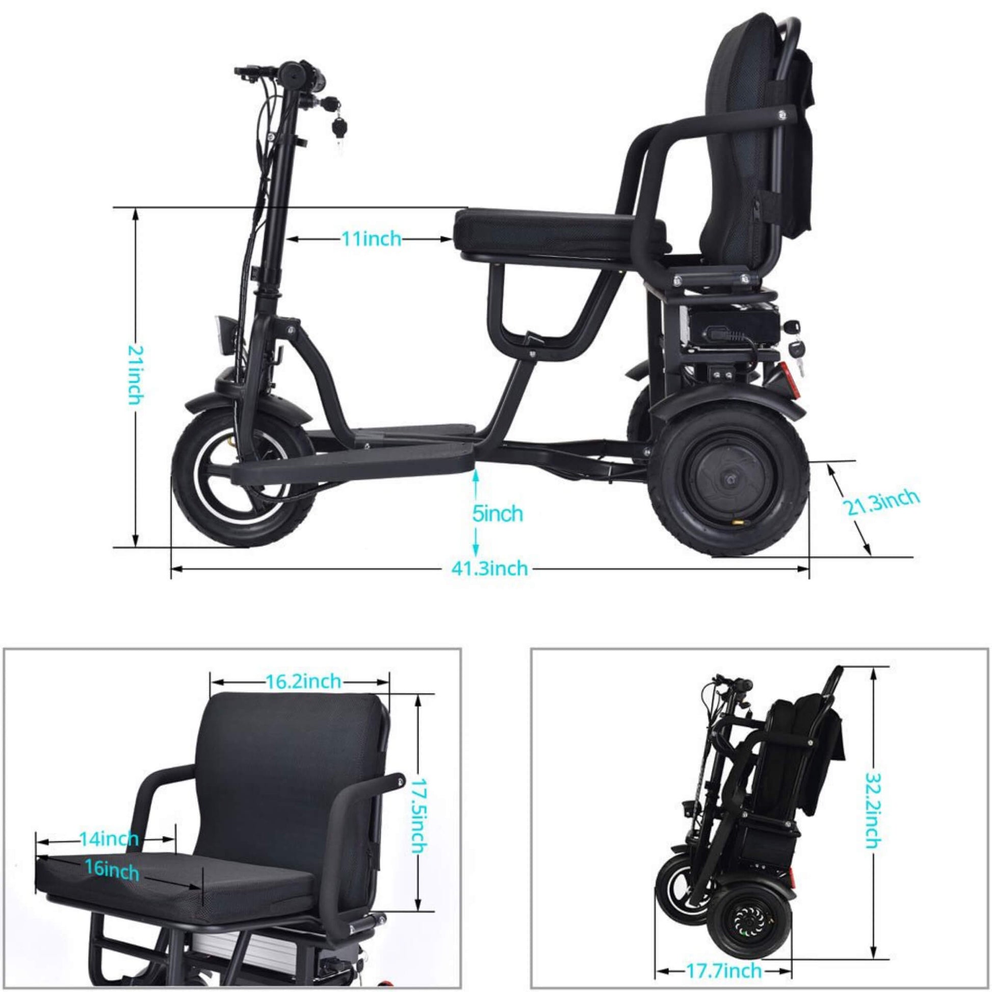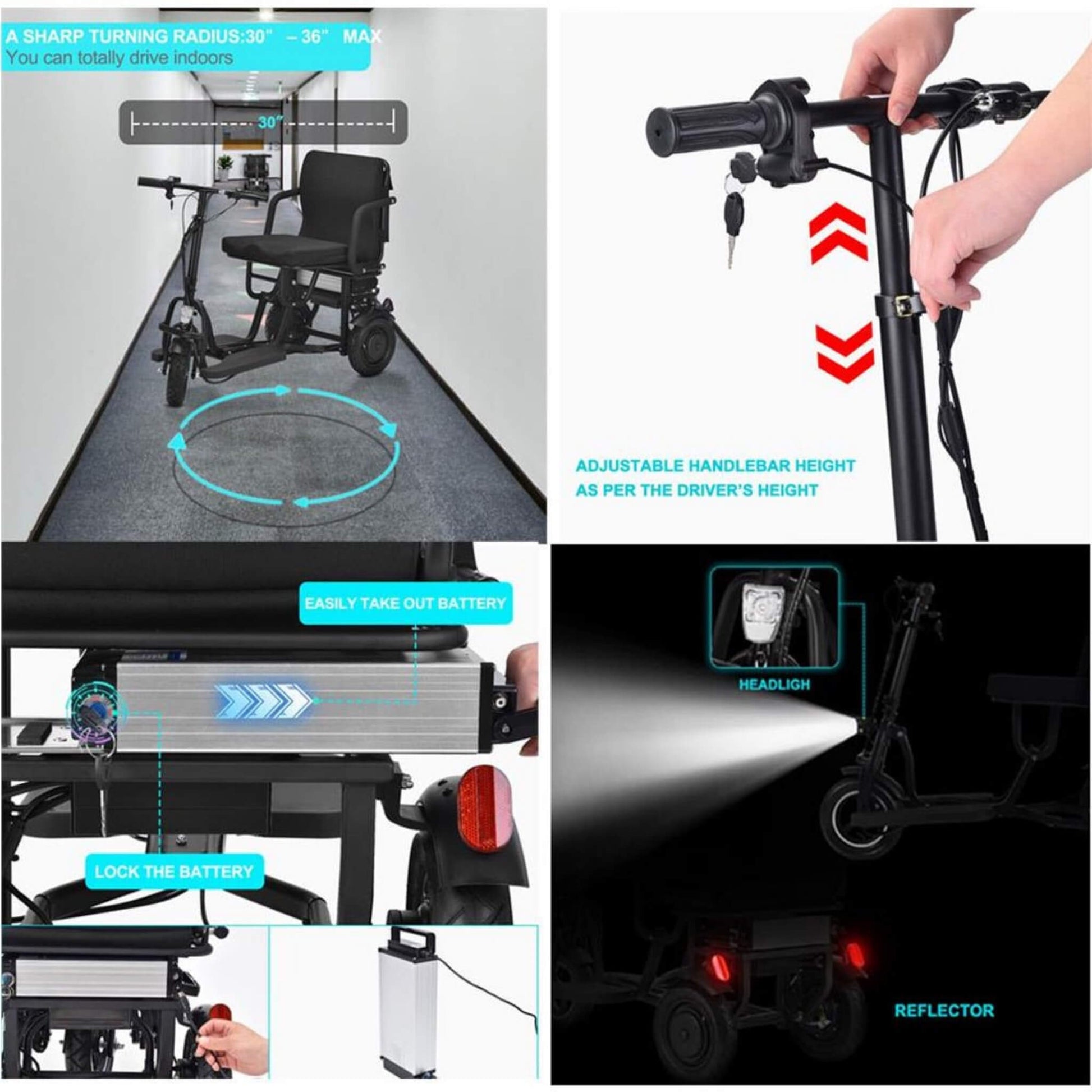 EZG 3-Wheel Electric Heavy Duty Lightweight Powered Mobility Scooter For Adults, 280LBS