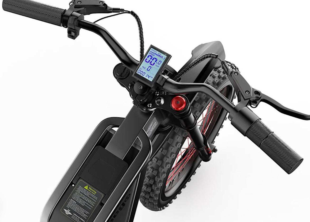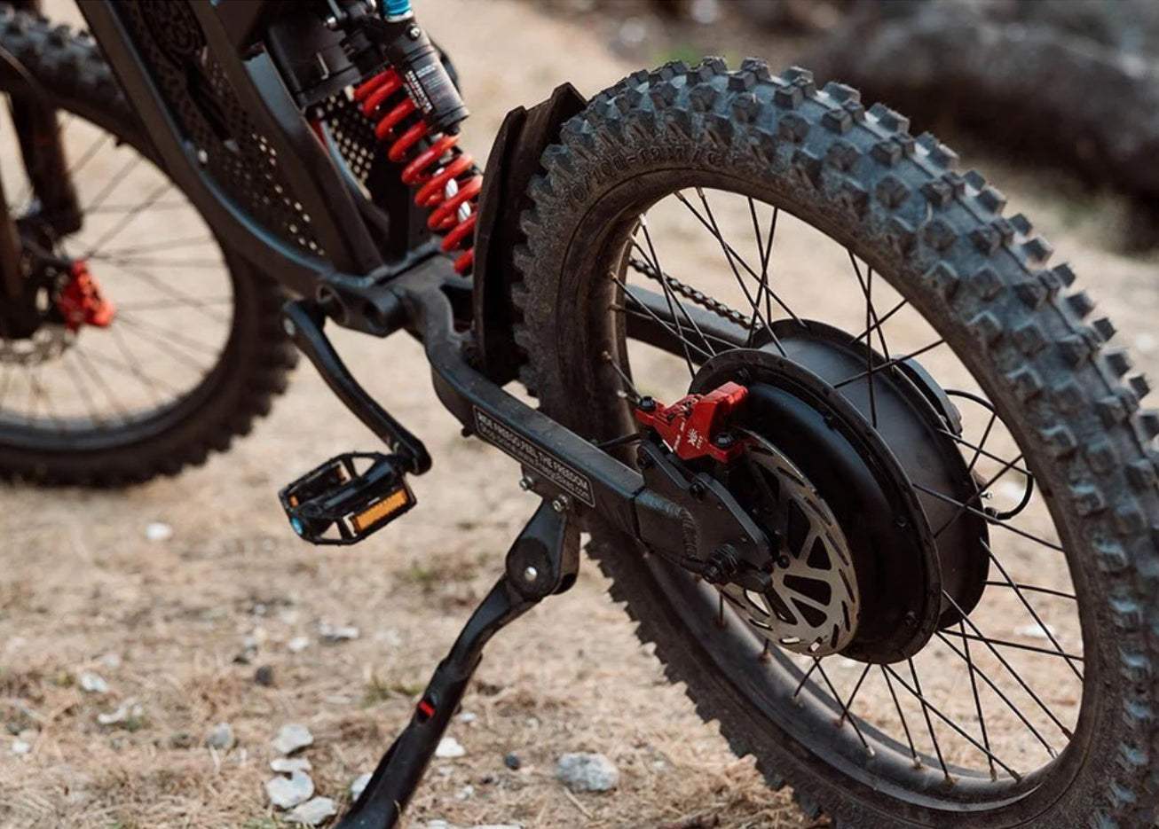 The Freego X2 Pro Off Road EV Dirt Bike featuring full suspension and a hydraulic brake system offers enhanced comfort, better control and improve stability on rough terrain reducing fatigue, and providing a smoother, safer ride. Hydraulic brakes provide precise stopping power while riding, ensuring fast and controlled breaking with self-adjusting brake pads that provide consistent performance and reduced hand fatigue on long rides.
