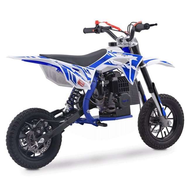 This gas bike has all the features you need for a reliable dirt bike. The front and rear disk brakes ensure your child's safety by providing sufficient stopping power when needed.