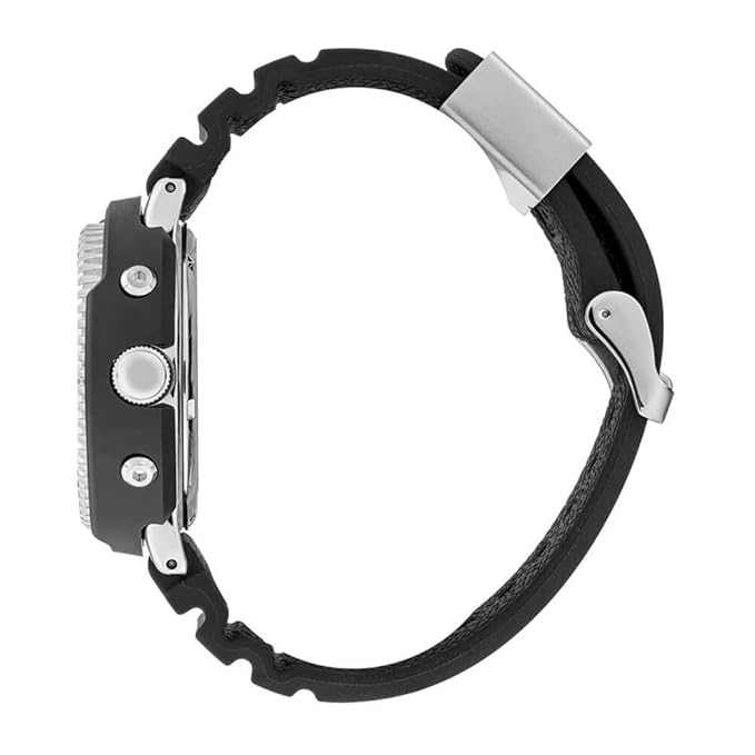 Seiko Prospex Solar Hybrid Diver - Modern Interpretation of the 1982 Hybrid Diver’s Watch. Designed for those who treat life as the ultimate adventure the Seiko Prospex line meets every challenge with technological excellence and winning design. This superbly functional timepiece is a modern interpretation of Seiko’s 1982 landmark H558-5000 the first hybrid analogue-digital diver’s watch with alarm and chronograph. Essential equipment on several expeditions to Mount Everest the design was also featured in a number of hit action films. The digital display offers time date alarm and chronograph readouts with a stopwatch function power reserve indicator and dual time capability while the black analogue dial features LumiBrite hands and markers. The energy-efficient Solar Cell powered by any light source with no battery change required provides a 6-month power reserve when fully charged. With a black one-way rotating elapsed timing bezel this versatile watch includes a lightweight matte black case secure screw down crown pushers and case back and durable silicone strap and follows ISO standards for scuba diving. 200m Water Resistant